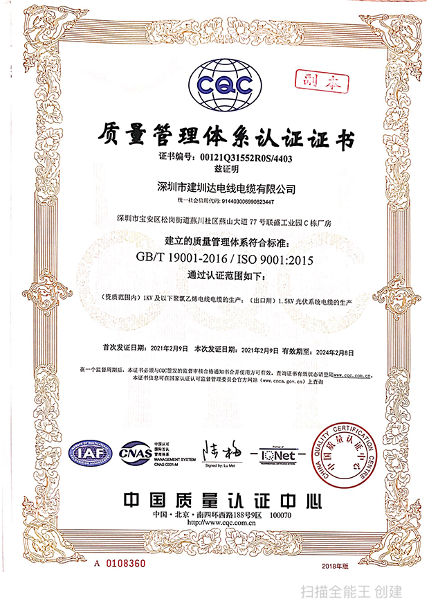 建圳達電纜立足于中國深圳,擁有技術(shù)精湛的隊伍、現(xiàn)代化生產(chǎn)設(shè)備、精密的檢測儀器,從原材料、生產(chǎn)、成品嚴格按照國家標準檢測,通過多個認證。